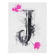 Bevel old typography letter J in black ink and pink spray