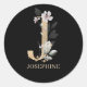 J Monogram Floral Personalised Classic Round Sticker