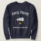 Jack Frost roasting on an open fire, cartoon illustration with text, for those of us not as "spirited" by the holiday season. T-shirts, cards (with full poem) and gifts.