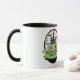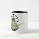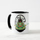 This customisable "Halloween" themed mug design features a green Jack o Lantern and a haunted mansion surrounded by bats with a text that you can personalise.
