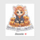 Our Jack-O-Lantern Cat Sticker features an orange and white cat dressed in a tie and jacket. Under him are the words "Happy Halloween". Leave the saying as-is or customise it to fit your own needs. This Halloween sticker is great for decorating a gift bag, handing out with treats, or presenting as a class reward. It can even be used for decorating water bottles, because it's waterproof.