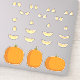 Build your own Jack-o-Lantern for Halloween without the mess using this sticker set featuring three pumpkins in different sizes and proportions and a selection of seven different eye sets, four noses, and eight mouths giving you the option of creating friendly or scary faces.