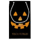 Trick or treat gift bag featuring a pumpkin jack o' lantern face on a dramatic black background.
