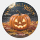 Light up your Halloween with this classic Jack-o'-lantern sticker! Featuring a glowing pumpkin against a spooky nighttime scene with a full moon, this design perfectly captures the spirit of Halloween. It's an ideal choice for personalising laptops, water bottles, and notebooks, or for using as seals on party favour bags and Halloween cards. You can even create your own custom touch by adding text.