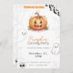 This invitation captures the playful essence of Halloween with its whimsical and friendly design. Set against a clean white backdrop, an adorable jack-o'-lantern takes centre stage, instantly evoking smiles and setting the perfect tone for a festive pumpkin carving gathering.