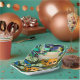 Get ready for Halloween. Party cups, plates with a fun cowboy jack-o-lantern face. Look at the cowboy hat. This pumpkin is ready for any party.