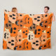 This large fleece blanket has a design of jack-o-lanterns with different faces repeating in each quarter.