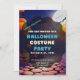 Invite your guests to a night of spooky fun with this modern and playful Halloween costume party invitation. The front design features a creepy pathway lined with glowing jack-o' lanterns, guiding the way towards a night of festive mischief. Bats flutter across the sky, and a luminous full moon casts its eerie glow over the scene, creating the perfect balance of spooky and enchanting elements that capture the magic of Halloween.