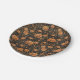 Celebrate Halloween with these black and orange plates covered in jack-o-lanterns on the vine.