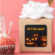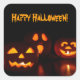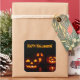 Square sticker with an image of Halloween jack-o-lanterns with ghoulish grins on black. Customisable holiday sentiment. See matching confetti, label and wrapping paper. See the entire Halloween Sticker collection under the CARDS & STICKERS category in the HOLIDAYS section.