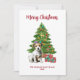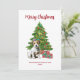 Cute jack russel terrier "Merry Christmas" card featuring Christmas t`ree and gift. Personalise with your text.