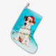jack russell Dog in snow with Santa Hat Lights Small Christmas Stocking