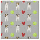 Jack Russell dogs and red hearts light grey Fabric