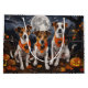 Unleash the spooky spirit with this eerie Halloween design featuring a pack of dogs under a dark, moonlit sky, surrounded by flying bats and glowing pumpkins. Perfect for those who love a touch of frightful fun with their furry friends!