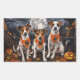 Unleash the spooky spirit with this eerie Halloween design featuring a pack of dogs under a dark, moonlit sky, surrounded by flying bats and glowing pumpkins. Perfect for those who love a touch of frightful fun with their furry friends!