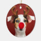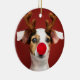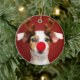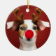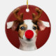 A cute Jack Russell puppy wearing reindeer antlers and a red nose is ready to give out lots of puppy kisses for Christmas!
