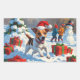 A lively Jack Russell runs playfully through the snowy winter scene, wearing a festive red Christmas hat. This energetic design captures the breed’s bold personality, cheerful spirit, and adventurous nature while reflecting the joy and magic of the holiday season. A heartwarming winter moment full of festive charm.