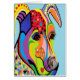 The Jack Russell Terrier is known as a fox hunter. He is related to the Parson Russell Terrier and the Russell Terrier. A Jack Russell Terrier is energetic, lively, and clever - usually quite independent as well. The Fox Terrier and Jack Russell Terrier type dogs of today are likely to be descendents of dogs from the period during which Reverend Jack Russell began breeding terriers to produce a breed with stamina for the hunt as well as the courage and physical capabilities to chase foxes once they were found. Jack Russells are working dogs and must be properly stimulated and exercised. The Jack Russell Terrier in this painting is a composite of many of his qualities: the strong jaw shows his no-nonsense working nature while the intense colours convey his drive to hunt. Since the Jack Russell can be quite the entertainer, with deadpan antics that catch you by surprise, the artist has incorporated brightly coloured geometric designs to represent his personality. Worker, hunter, athlete, and entertainer - that says it all - the Jack Russell Terrier.