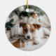 This adorable Christmas ornament, featuring a Jack Russell Terrier puppy lying under a Christmas tree, is a wonderful gift for any Terrier lover.