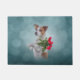 Jack Russell Terrier dog holds a bouquet of flower Doormat