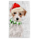 Dog lovers will adore receiving or giving this cute and funny holiday gift bag featuring a dressed for the season Jack Russell Terrier dog in a striped green and white winter scarf and a Santa hat.