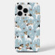 Cute Jack Russell Terrier dogs sit and stand with paw prints and dog bones pattern.