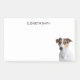 Image of a cute Jack Russell Terrier breed type dog in the lower right corner, set on solid white. Personalise with your name or message in black minimalist font.