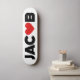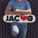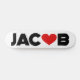 The name Jacob with the letter o replaced with a red love heart. The colours can be changed.