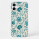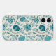 Jacobean Floral Big Pattern Teals on Cream iPhone Case