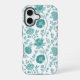 Jacobean Floral Big Pattern Teals on White iPhone 16 Case