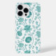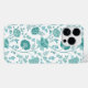 Jacobean Floral Big Pattern Teals on White iPhone Case