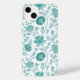 Jacobean Floral Big Pattern Teals on White iPhone Case