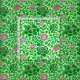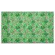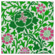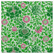 Fabric in a William Morris wallpaper design of flowers in deep emerald and lime green, accented with fuchsia pink, against a pastel green background