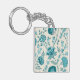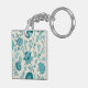 Jacobean Floral Lg Pattern Teals on Cream Key Ring