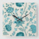 Jacobean Floral Lg Pattern Teals on Cream Square Wall Clock