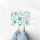 Jacobean Floral Lg Pattern Teals on White Doormat