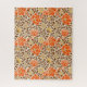 Puzzle in a William Morris wallpaper design of flowers in mandarin orange and mustard gold, with coffee brown, leafy vines, against a parchment beige background
