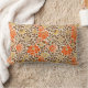 Lumbar pillow in a William Morris wallpaper design of flowers in mandarin orange and mustard gold, with coffee brown, leafy vines, against a parchment beige background