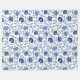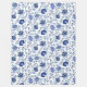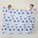 Jacobean Floral Pattern Blue on White Fleece Blanket
