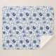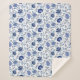 Jacobean Floral Pattern Blue on White Sherpa Blanket