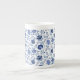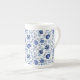 Jacobean Floral Pattern Blues on White Bone China Mug