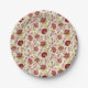 Jacobean Floral Pattern Reds Pinks Gold Cream Paper Plate