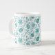Jacobean Floral Pattern Teals on White Large Coffee Mug