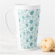Jacobean Floral Pattern Teals on White Latte Mug