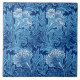 Art Nouveau, Jacobean damask pattern tile of stylised, scrolled leaves and flowers, based on a vintage William Morris textile design, digitally enhanced and coloured in light sky blue on a deep navy / indigo blue background, accented with white flowers