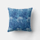 Art Nouveau, Jacobean damask pattern throw pillow of stylised, scrolled leaves and flowers, based on a vintage William Morris textile design, digitally enhanced and coloured in light sky blue on a deep navy / indigo blue background, accented with white flowers