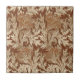 Ceramic tile in a Jacobean damask pattern of stylised, scrolled leaves and flowers, based on a vintage William Morris textile design, digitally enhanced and coloured in shades of taupe tan and cream, with a coffee brown background
