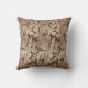 Art Nouveau, Jacobean damask pattern throw pillow of stylised, scrolled leaves and flowers, based on a vintage William Morris textile design, digitally enhanced and coloured in shades of taupe tan and cream / off white, with a coffee brown background