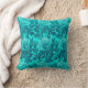 Art Nouveau, Jacobean damask pattern throw pillow of stylised, scrolled leaves and flowers, based on a vintage William Morris textile design, digitally enhanced and coloured in turquoise and deep teal blue, with light aqua flowers