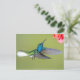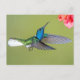 Postcard featuring a blue & green white-necked jacobin hummingbird in flight. Photo taken at Rancho Naturalista, Cartago Province, Tayutic, Costa Rica.
